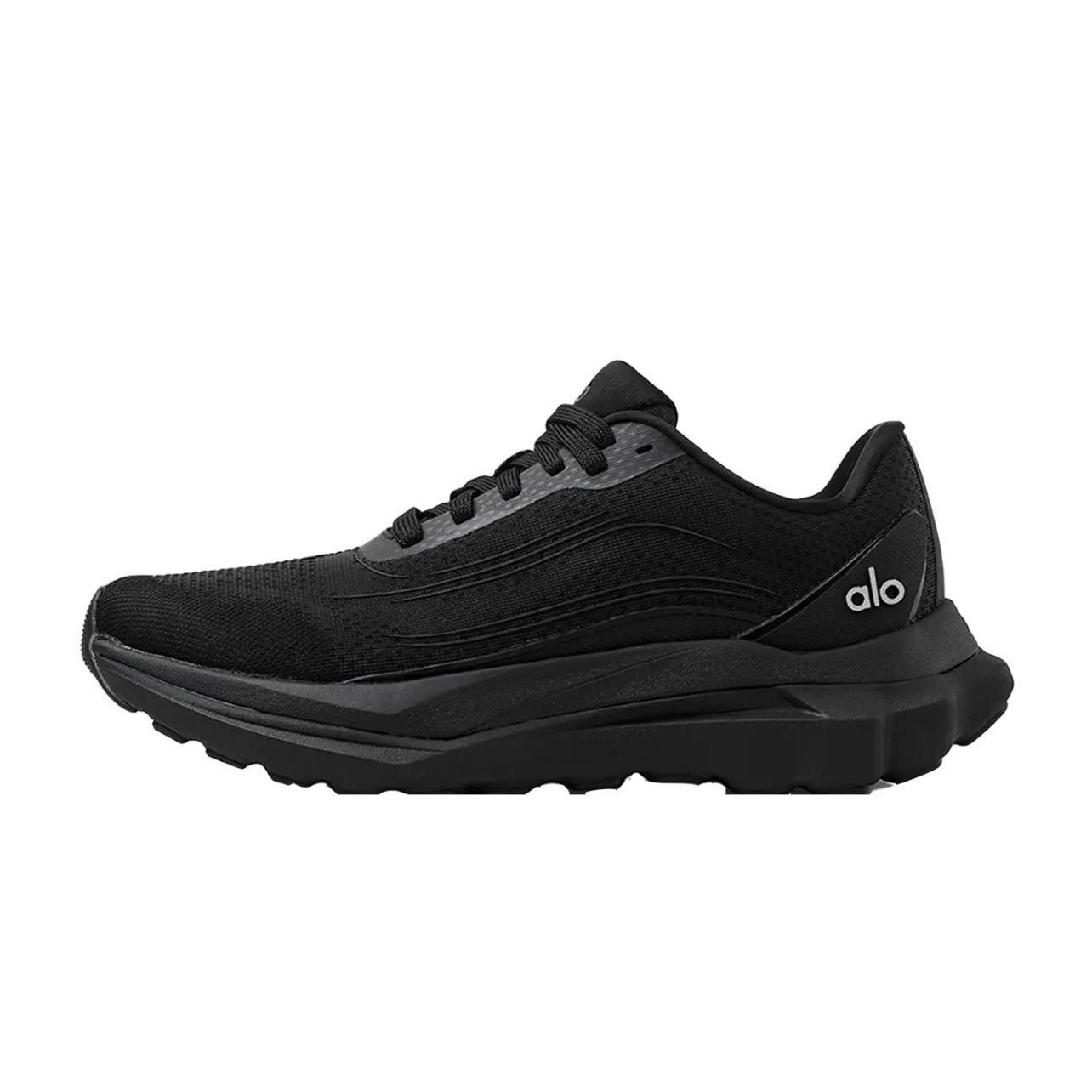 Meet the Alo Runner Black/Black — Alo Yoga’s first-ever performance sneaker, engineered for total-body support and mindful movement. Whether you’re running on streets, trails, tracks, or sand, this unisex shoe delivers unmatched stability and responsiveness. It features a stabilizing heel clip, extra-firm heel cushioning, and a dual-density midsole for soft landings and quick rebounds.