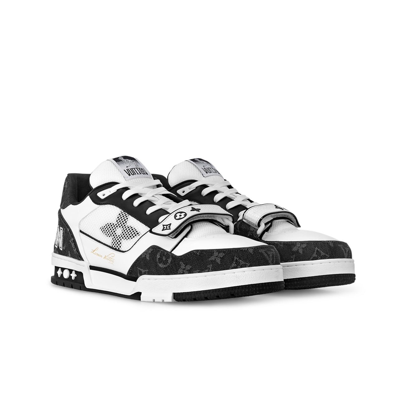 Designed for Louis Vuitton by Virgil Abloh, and inspired by vintage basketball sneakers, the LV Trainer sneaker is an icon of the shoe collection. This version comes in Monogram denim and features a velcro strap with injected Monogram Flowers.